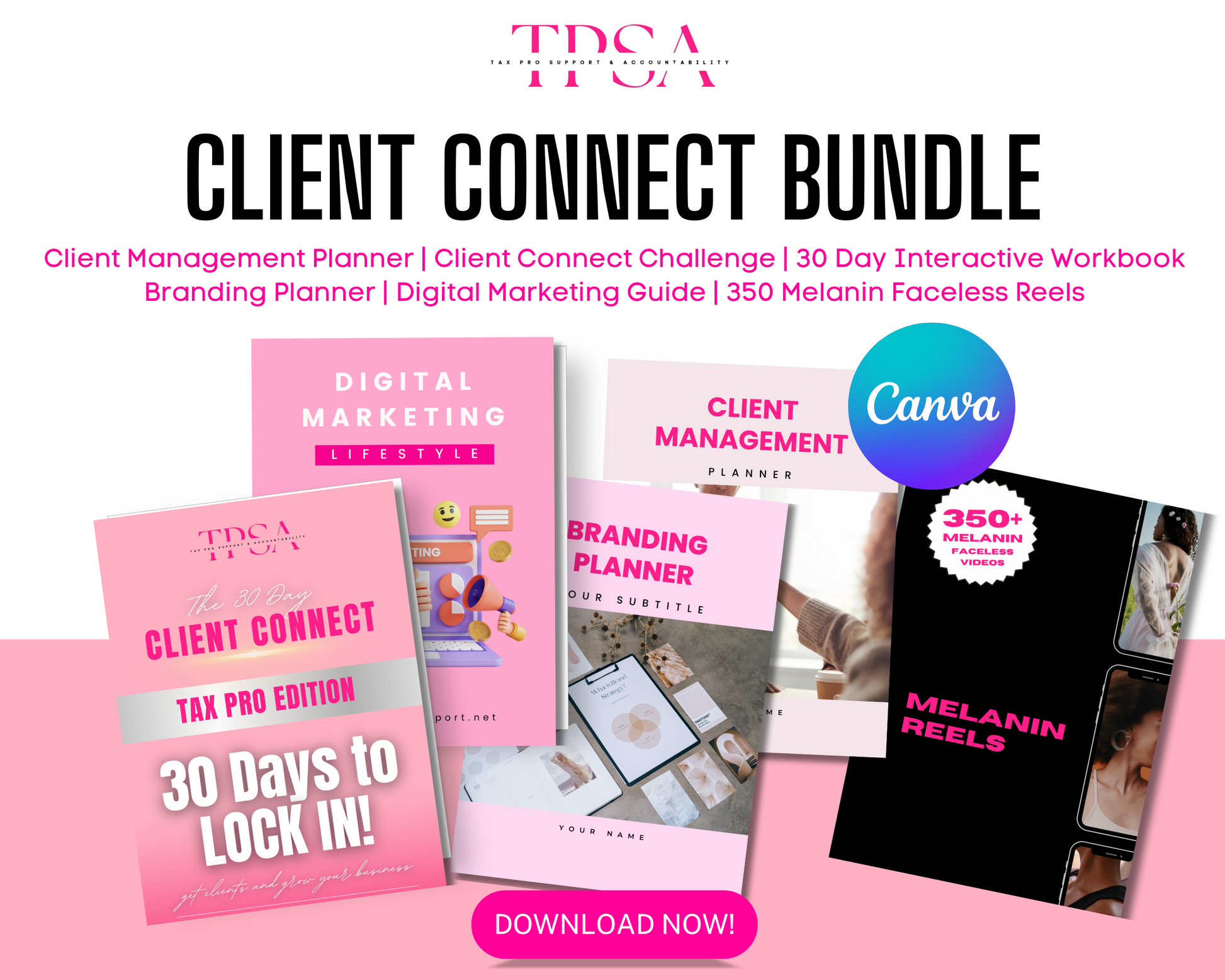 Elevate your client engagement and streamline your business operations with the TPSA Client Connect Bundle—a comprehensive toolkit designed for entrepreneurs, tax professionals, and service providers.